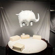 This experimental installation merged miniature model-making and hand crafted art with projection-mapping, MIDI controllers and realtime generative AI.